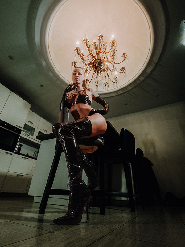 Die SM Welt und die des Bizarren ist für mich nicht nur mit Sadismus und Schmerz verbunden. Auch Fetische und eine gewisse Erotik spielen für mich eine Rolle. Ich habe einen ausgeprägten Faible für Latex, Nylon und High Heels/ Stiefel. Dein Platz ist zu meinen Füßen!
